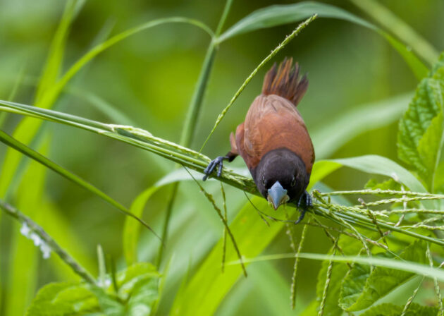The somewhat more open areas near the Sepilok Rainforest reserve are a good location to see the wrecks of rusty cars as well as two munia species: Chestnut Munia …