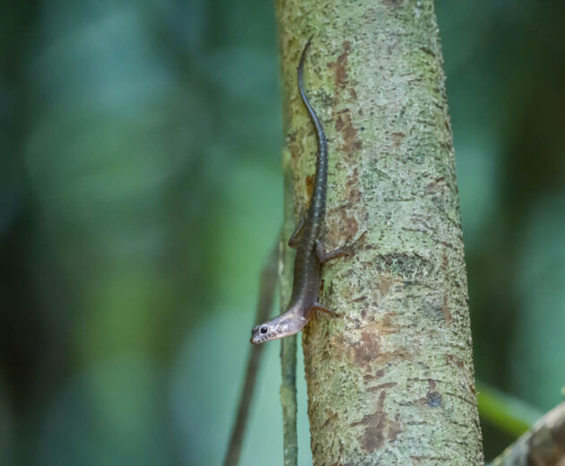 It mainly feeds on insects, as there are no convenience stores in its forest habitat.