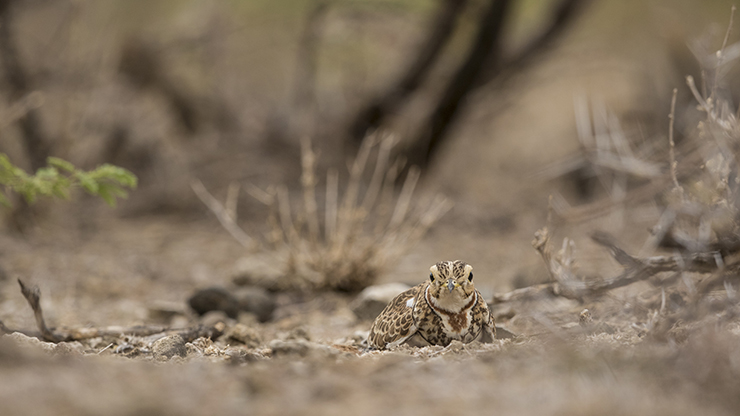 Judging from its name, this incremental step-up from the previous bird is the species referred to in my introductory paragraph in this article. But this is no mere revised edition, the Three-banded Courser is in an entirely separate genus within which it still stands out. Featuring what seems to be a white base brushed broadly with buff, adorned with thin lines of dark brown and rich chestnut, then further liberally scalloped and chevroned above and below – this is the only courser with the word “beautiful” in the description (in the second edition of Birds of East Africa, at least). As I lay on my stomach in the sandy, thorny surroundings of Lake Baringo, Kenya, I peered through my viewfinder at this phenomenally – infinitely – gorgeous animal, and wondered when would I stop drooling over it. Viewing the bird from the front I was convinced that I was looking at the pinnacle of avian beauty. To this day, I struggle to find a prettier bird.