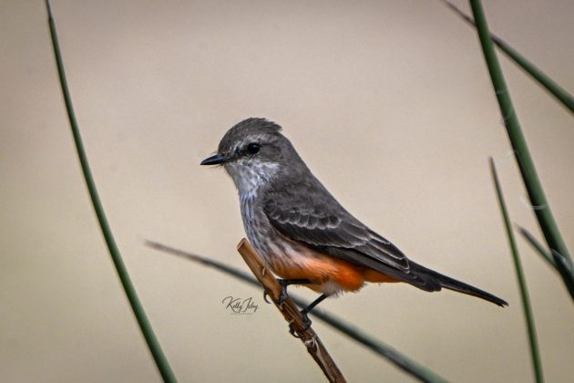 While the male embodies fire, the female Vermilion Flycatcher offers a quieter beauty. One that rewards a more attentive gaze. Covered in soft brown above with a warm, peach-toned underside, she easily blends into the landscape. There is subtle elegance in her coloration that contrasts with the male’s intensity. If you can photograph both together, you can create a compelling visual story of contrast and balance.