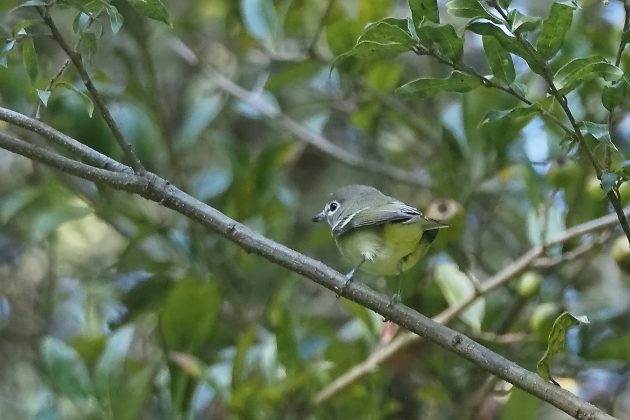 Unfortunately, it was an even poorer day for my already poor photography skills, so you’ll have to settle for this shot of a Cassin’s Vireo. He’s seen from behind because I asked him for a flirty pose.
