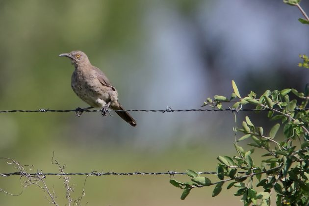 And a Curve-billed Thrasher raised a couple of broods this spring deep within the thorny heart of a self-sown Prickly Pear cactus. I never did get a good look at the nest itself. Could you? The second photo shows one of the progeny produced, as adults do not have that spotted breast.