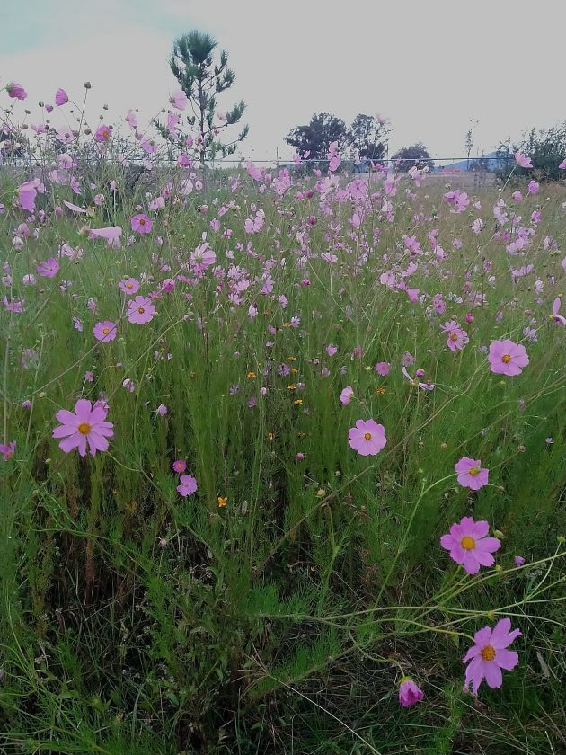 I can’t really be sure that the bird population on our lot has gone up much with my efforts. But I like to think that this 60 m stretch of young trees might already be a refuge for some of the birds that have lost their homes with the gradual development of this area on the growing edge of Morelia. As well as the small meadow patch that I am protecting alongside that 200 ft/60 m row of trees: