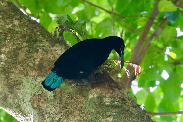 The picture above is actually a young male, Victoria’s Riflebird, practicing displaying on a prominent perch in north east Queensland.