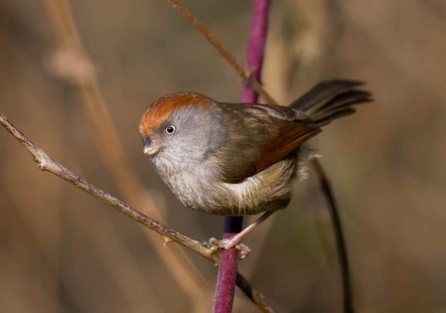 Ashy-throated Parrotbill: Maybe this species always desperately tries to be taken seriously, but with the red “hair”, the tiny beak, and the curious eyes, it will only ever come over as cute.