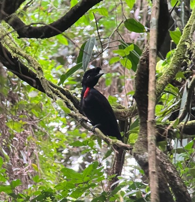 - Bare-necked Umbrellabird – Rare and endangered, laying eyes on one of these crow-sized cotingas is always an achievement. It might take some trekking on muddy trails, but if you are lucky enough to see an umbrellabird, you’ll probably get really good looks. Most seem fearless and can forage in the upper understory, sometimes at fairly close range!