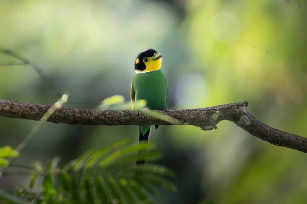 Broadbills – definitely among the best. The Long-tailed Broadbill is a super cartoonish-looking bird, almost as if it is wearing a helmet on its head.