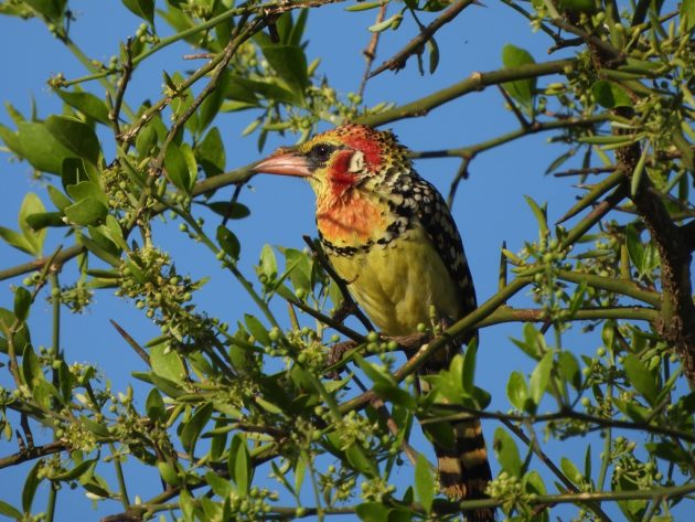 This is always a difficult question for me because I take a keen interest in every bird, from the tiny warblers and waxbills to the massive hornbills. Every new season, place, habitat, and time gives me a new favorite bird. Right now, I am in love with the Red-and-yellow Barbet.