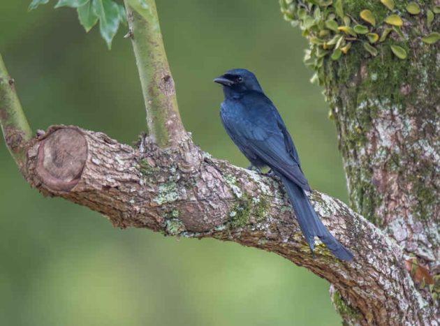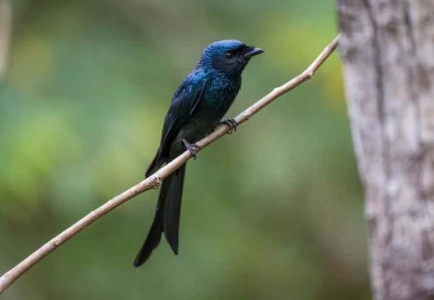 For those who want to learn Ancient Greek, the scientific name of the Black Drongo, Dicrurus macrocercus, offers the opportunity to learn two different words for “tail”. The genus name offers oura for tail (along with dikros for forked), while the species name gives kerkos for tail (along with makros for long).
