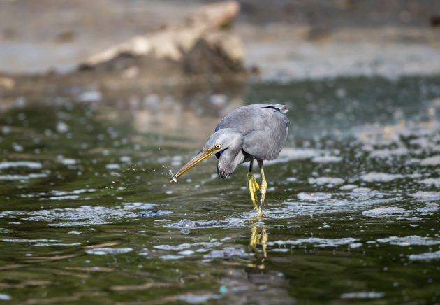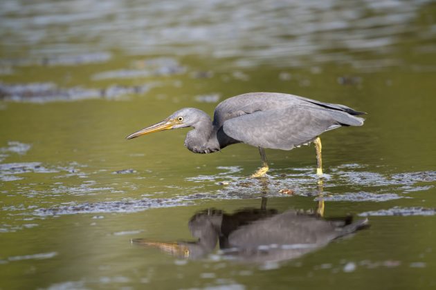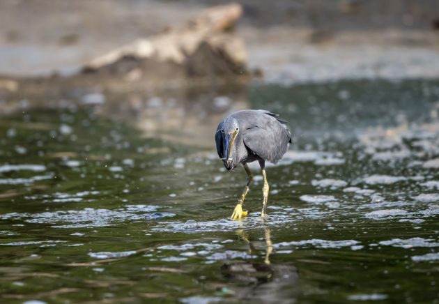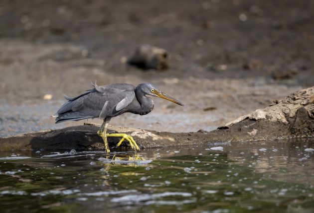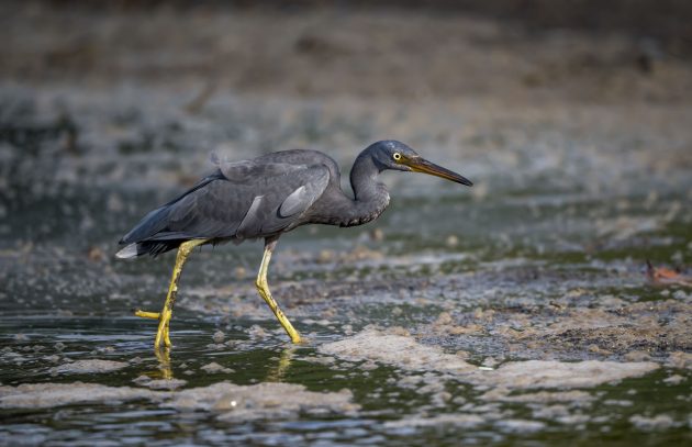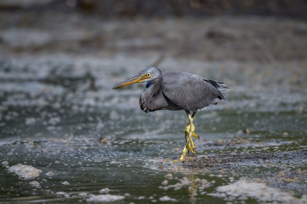 A Pacific Reef Heron in a miniature lagoon did not seem frightened by the appearance of a bird photographer.