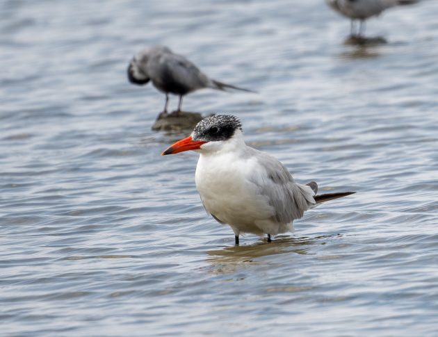 Caspian Tern, the largest of all terns, “easily recognized by its brilliant red fish-knife of a bill” (Allaboutbirds) …