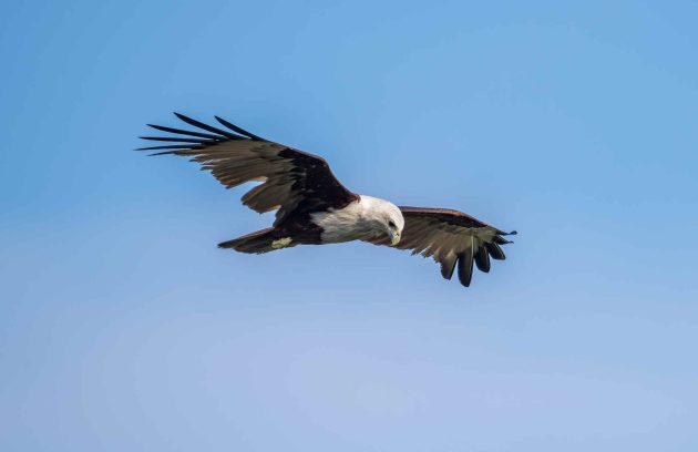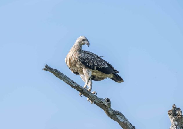 The White-bellied Sea Eagle is larger and more common than the previous species. While it preys mainly on fish, it also eats birds (source).