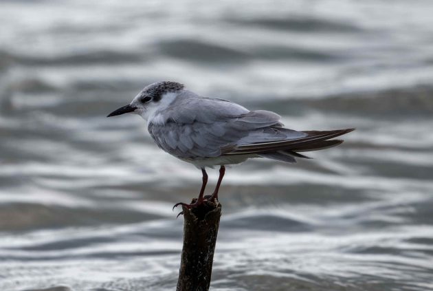 … Whiskered Tern, a much smaller tern with mostly greyish plumage …