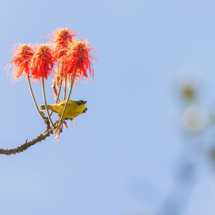 I returned to the verandah as everyone else retreated to their rooms, the dismal surroundings proving to be a little too daunting for photography. Truth is that it was fairly slow, bird-wise, and I’m sure that porch lights were already being turned on. It was then when I noticed a flash of white that belonged to a Yellow-fronted Tinkerbird, that was followed by glints of red, blue, green, and effectively any imaginable colour as a mixed flock steamrolled through the foliage. That mixed flock was covered in a previous post on this blog: The Magic of a Mixed Flock.