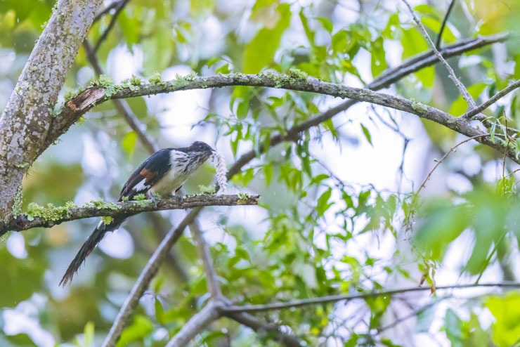 A looping movement in a nearby tree turned out to be a large, long-tailed, black-and-white bird: my first good look at a Levaillant’s Cuckoo. By this time we were firmly battling the encroaching mist.