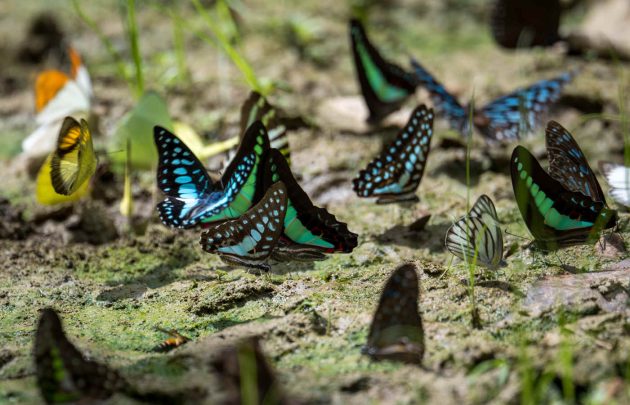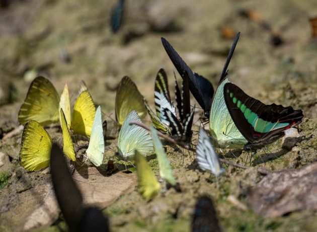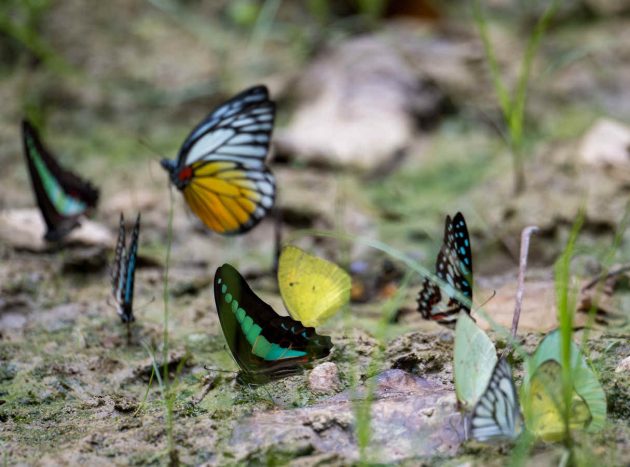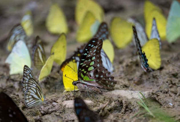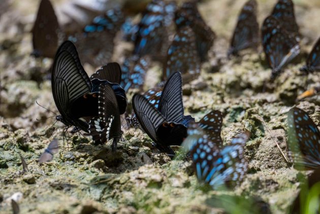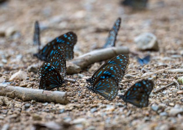 In the “Other” section of my posts, I usually show ugly mammals, just to have a contrast to the beautiful birds. Not today. Kaeng Krachan has several hundred butterfly species, and they gather on or near the road to lick up salts. Needless to say, I do not know the name of a single species.