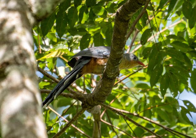 According to eBird (and my own observation), the species “creeps through foliage like a squirrel”, which is kind of amazing for such a largish bird (length 50-60 cm).