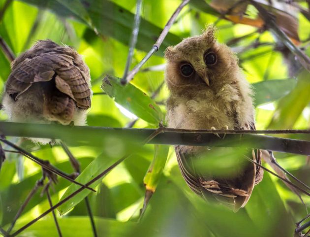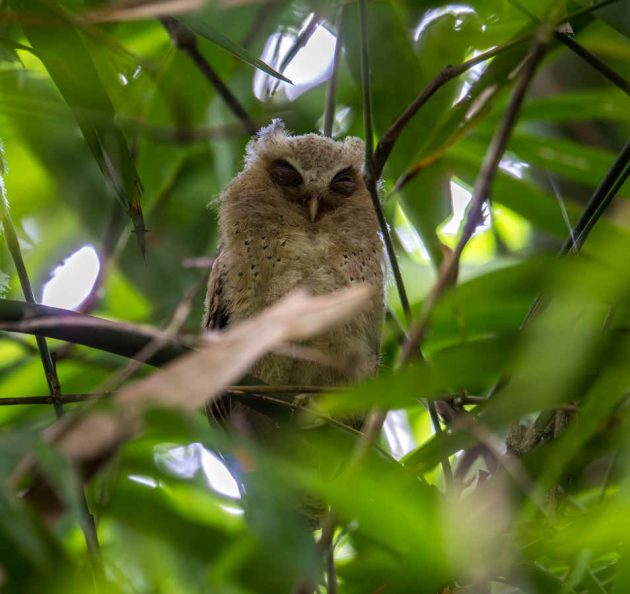 White-fronted Scops Owls similarly do not move around much during the day. My guide from the Baan Maka Lodge found an adult with two juveniles just a few meters from the main road through the national park.