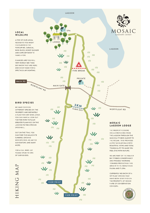 Yes, we form part of the Walker Bay Fynbos Conservancy, where protecting the local Fynbos and the habitat it creates for the various bird species and small game is paramount.