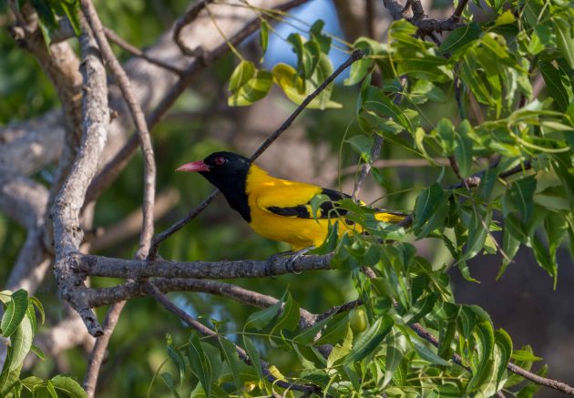 The scientific name of the Black-hooded Oriole, Oriolus xanthornus, indicates that this is a yellow bird (xanthos yellow; ornis bird). Creative, this is not.