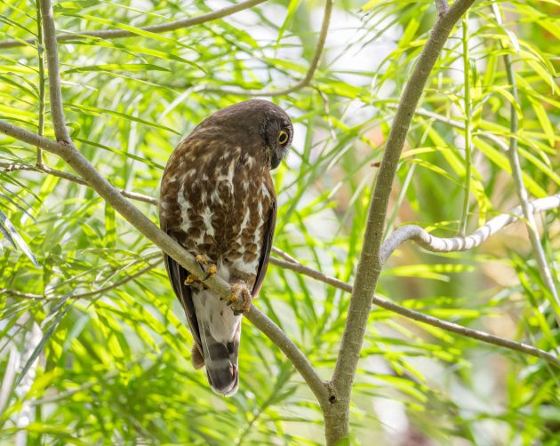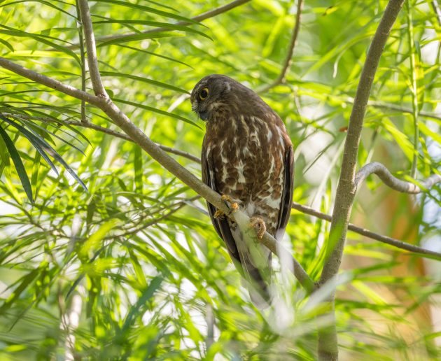 The scientific name Ninox scutulata is a bit of a stretch – scutulata indicates that the bird is diamond-shaped. Yeah, whatever.