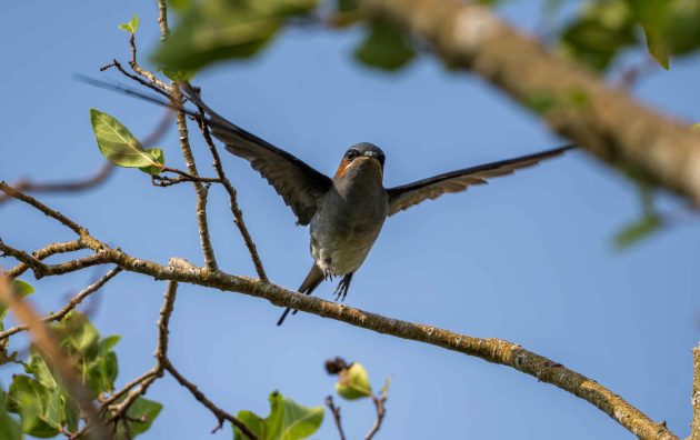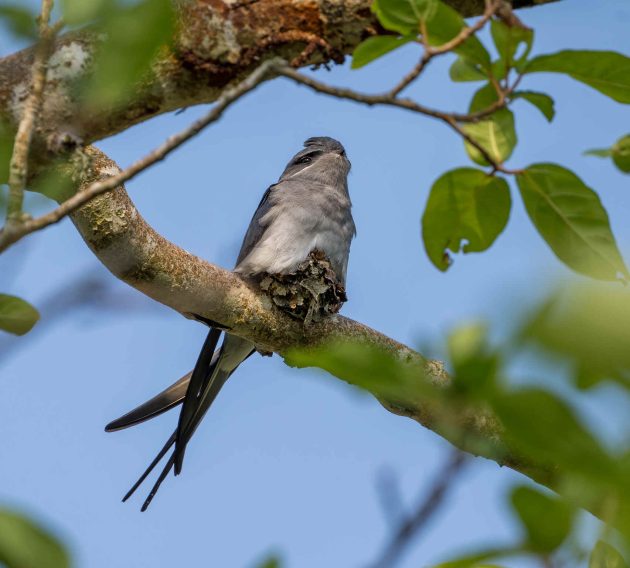 The Crested Treeswift seems to have borrowed this approach from woodpeckers – red on the face indicates a male.