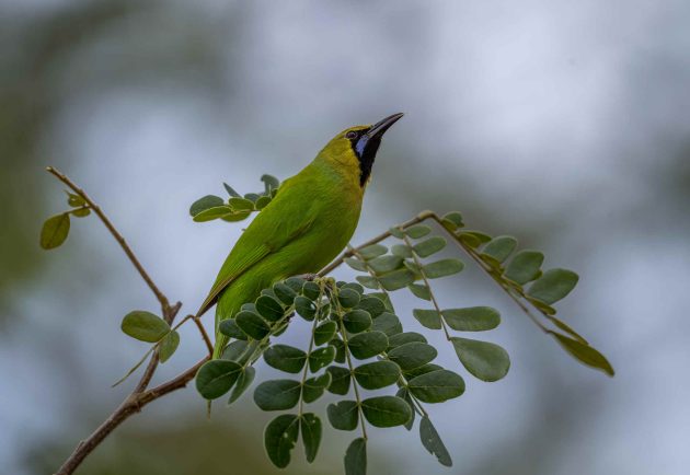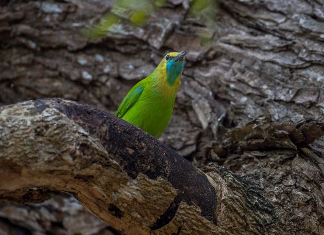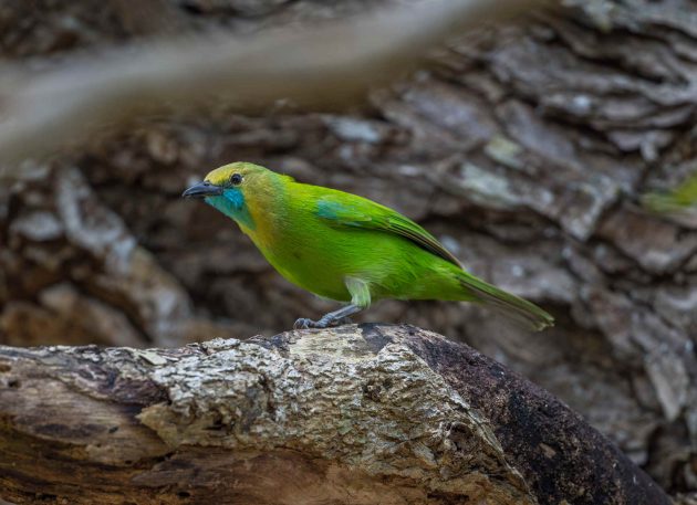 There are other ways to distinguish between male and female birds, as Jerdon’s Leafbird illustrates. Here is the female …