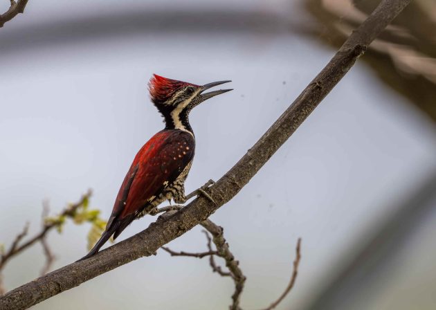 For Red-backed Flamebacks, the distinction is less strict, though the female (not shown) has less red on the crest.