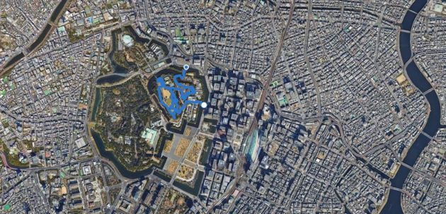 Once you get the hang of it (use Google Maps), the Tokyo subway system is remarkably efficient (and, for Americans, stunningly clean). Thus, trips around the area are relatively quick and easy, even when it is hot and humid and/or raining, as it was for my trip in late June. The eBird track shows how the Imperial Palace grounds are a rare spot of green in the center of Tokyo. The Fukiage Garden is to the left of the track and it contains Fukiage Palace, the main residence of the Emperor. As indicated above, that section is generally closed to the public.