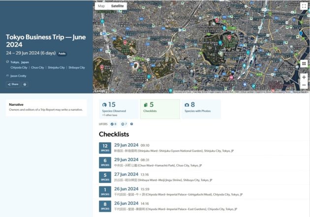 I will surely make more business trips to Tokyo and there are several promising hotspots (e.g., Kasai Rinkai Park, which has nearly 2,000 checklists and 215 species observed) that were too far from the hotel I stayed at this trip. I look forward to returning.