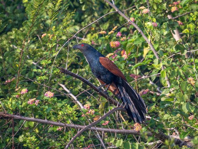 Like the malkoha, the Greater Coucal is a member of the cuckoo family, and like the malkoha, it is not a brood parasite.