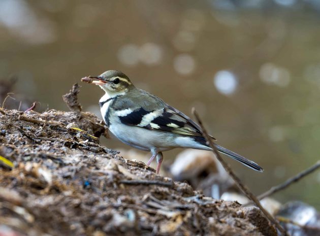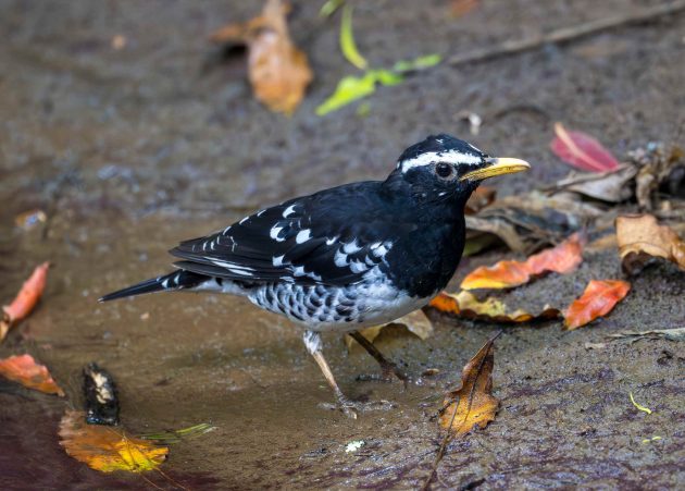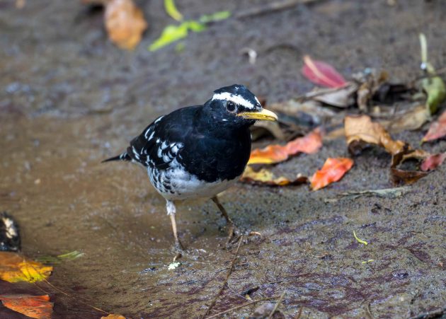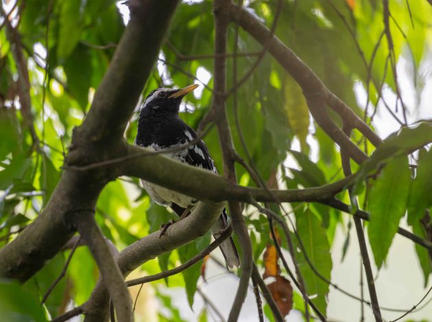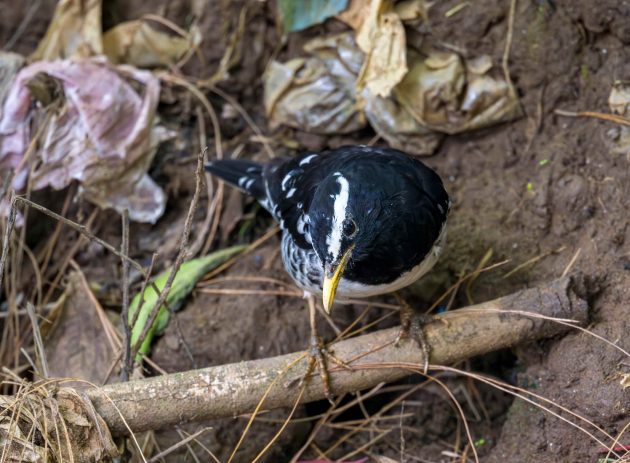 However, a little stream running through the park – well hidden with shrubbery – is the hunting ground of the very attractive Pied Thrush.