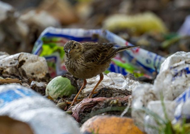 A Paddyfield Pipit displayed similar confusion about the difference between a paddyfield and a trash deposit. And yes, I like taking photos of birds and trash. They are real. If you (e.g., the Sri Lanka Tourist Office) do not want me to take them, don’t spread your trash around in nature.