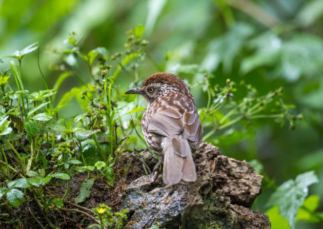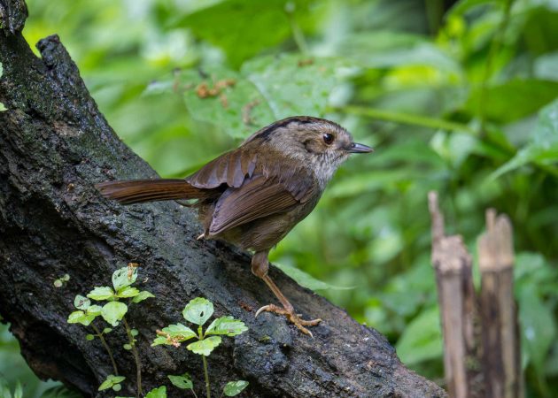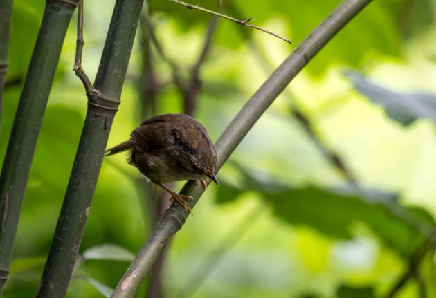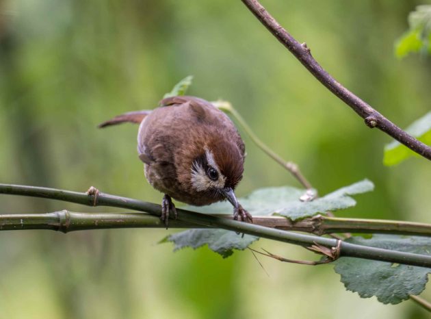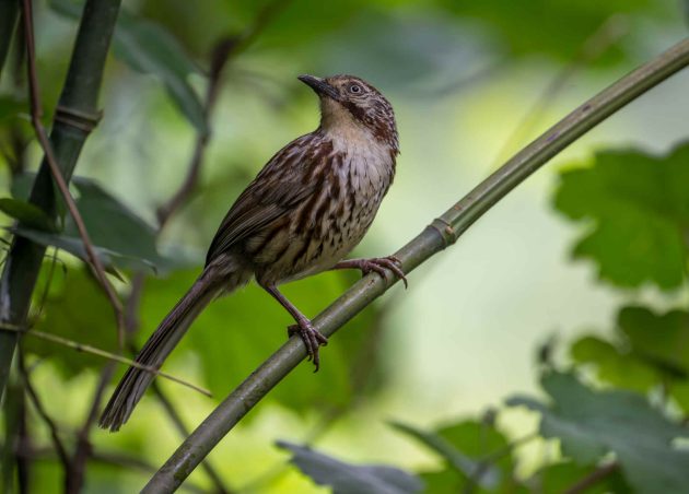 Sadly for the babbler, a paper on the importance of brain size for nest complexity gives the species low marks for intelligence. It shows a photo of a nest of the babbler with the comment “the domed nest of a Rufous-capped Babbler (Cyanoderma ruficeps) is simply built using dry leaves and lacks a complicated knit or lining, which makes its structure incompact and fragile.”