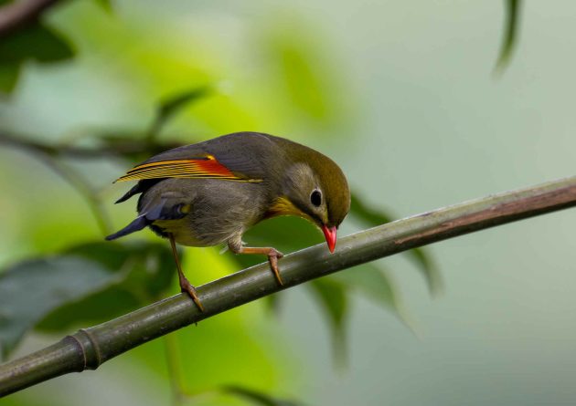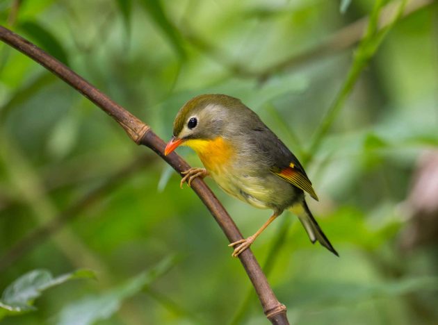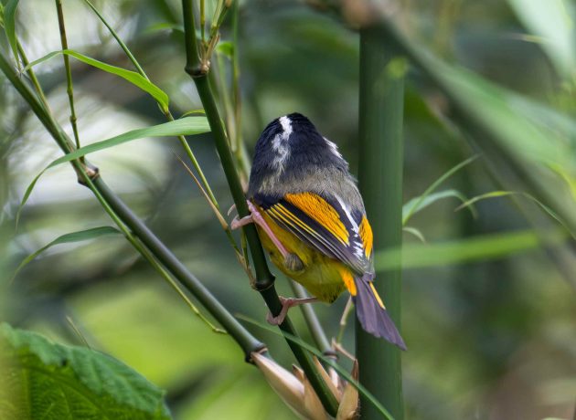 The Emei Shan Liocichla is in the same family as the laughingthrushes, Leiothrichidae, and presumably one of these “allies” of laughingthrushes in the family. I still find the term allies a bit puzzling, having read too much on military history and wondering whether, in a war among the bird families, the liocichla would automatically fight on the side of the laughingthrushes.