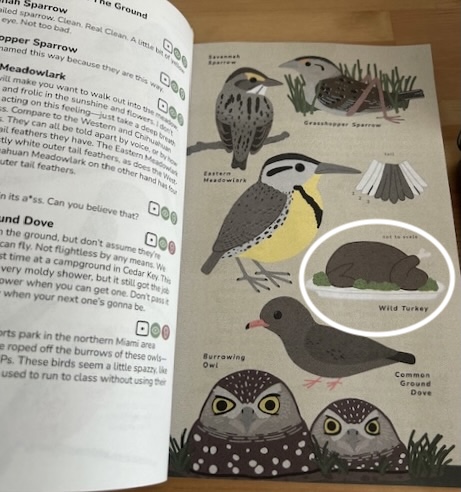 As you may already have guessed, this is not David Allen Sibley or Nat Geo, but I found the illustrations to be completely charming and startlingly accurate. Some serious artistic talent and time went into drawing and coloring all of the images which, funny as they are, cannot be dismissed.