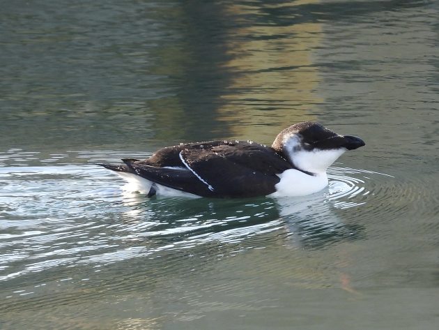 My bird buddy, Theresa, always is looking for good birds to see or rarities to chase. She always lets me know about interesting sightings. At the beginning of the month, she called me about a Razorbill, which was seen near the Toronto waterfront. (Razorbills are normally seen in the North Atlantic.) This bird was very cooperative. It spent the majority of its time in one of the shipping channels. It would dive and then pop up by the channel’s edge, where its admiring fans were snapping photographs of it. I even managed to get a poor photograph with my cell phone, for my records.