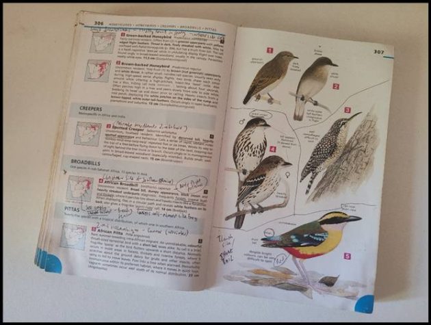 Since I first laid eyes on the African Pitta (Pitta angolensis) in my Newman’s Field Guide when I started birding, I knew this was a species I wanted to see. That same field guide is now well used, with dirty, dust-covered page edges and plenty of notes from my early days of learning how to identify birds.