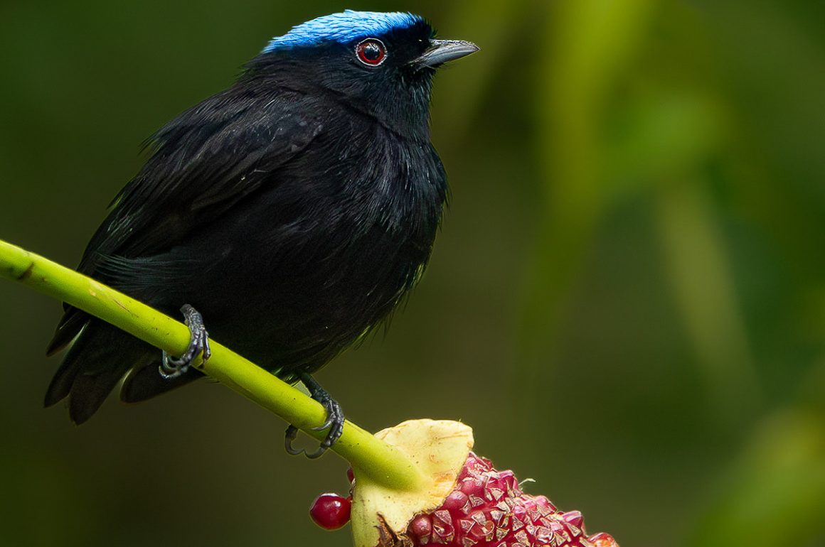 Then came the Velvety Manakins, sliding into the breakfast crowd with the charm of professional pickpockets, grabbing snacks as if nobody would notice.