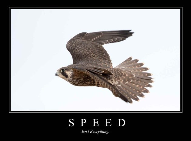 Peregrine Falcon: “That one hit home after I overshot my prey and crashed into a window. I glide more slowly these days. People call it mindfulness.”