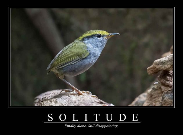 We’ve reached the twelfth edition of Demotivational Posters for Birds — or, as our lawyers prefer, “Emotional Support Imagery”. After so many sessions, we felt it was time to address the emotional well-being of our target audience.