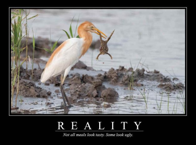Birds spend most of their lives eating—or looking for things to eat. Sometimes they do it elegantly, sometimes messily, but always with dedication. They consume insects, fruit, fish—sometimes things that make us wonder what’s going on in their heads. Here, for the amusement and mild existential dread of our “feathered friends,” is a collection of demotivational posters celebrating food: the one thing that drives every bird.
