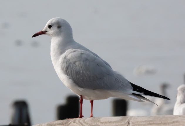 Black-headed Gulls are not common here. According to eBird, “Rare but regular vagrant to North America, especially in the northeast, where usually seen singly among flocks of Bonaparte’s or Ring-billed Gulls. Compared to nonbreeding Bonaparte’s, note Black-headed’s red-tipped bill, dark red legs, and more extensive black in underwings.” Well, here we are with our “regular vagrant” right on cue! I have seen a Black-headed Gull come to our Dare County area, but they have never been reported in Duck, according to the Carolina Bird Club statistics for the state and county. Consequently, it took a moment to reacquaint myself with their field marks, most telling being those red legs and red-tipped bills. In Duck, some of our common gulls are the Bonaparte’s Gulls and Laughing Gulls, which some birders can mistake depending on the time of year. We see Bonaparte’s in our winter, not in summer, so that helps. We see Laughing Gulls in the spring, summer, and fall, and they are prolific. In the winter, Laughing Gulls are far less common.