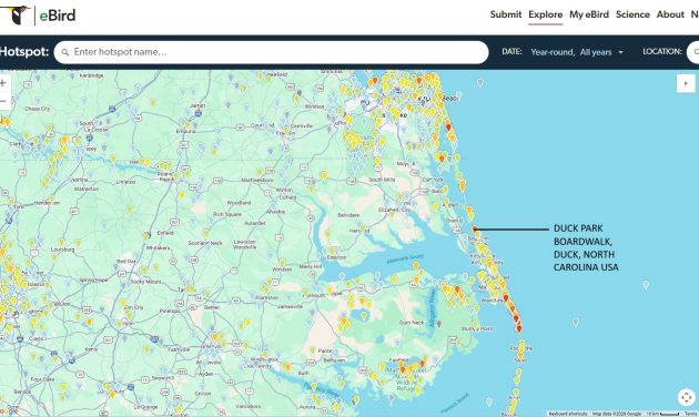 But back to the Black-headed Gulls. Every day, birders from different parts of the state and from the surrounding states were reporting the pair in Duck. Sometimes, only one, the adult, would be seen. The juvenile seemed better at hiding out with the Bonaparte’s than its adult buddy. I would walk the boardwalk and meet new birders looking for them. Some were excited because it would be a lifer! Yes, lifers thrill me too, and I would help locate them. Other birders had seen one before somewhere else, in Europe or Asia or even in the western part of the county at the refuge at another time. Nevertheless, they were here to get it for their 2025 year bird list or their new 2026 year bird list. While I offered the latest sighting location, trying to be helpful, the local birder landmarks didn’t always help non-locals, so explaining where this or that place was as hard as pointing out a bird in the tree or bush to your birding pal. Then I would suggest a local lunch place to help our local economy in the tourist off-season. We do have good food for humans in Duck, too. For me, seeing so many birders coming to Duck in winter was a thrill and a rarity.