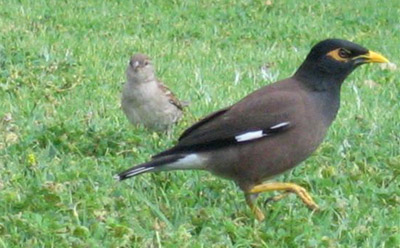 Eran’s photos offer a fascinating glimpse into the disproportionate presence of certain common birds. Because he approached his task without prejudice, seeking merely to snap a few representative shots of the local birdlife, he didn’t distinguish between native and nonnative species, treasure and trash birds. He took pictures of what he routinely saw in his travels. What did he come back with? Besides Rock Pigeons and House Sparrows, which he recognized but shot anyway, Eran returned with photos of Common Mynas: