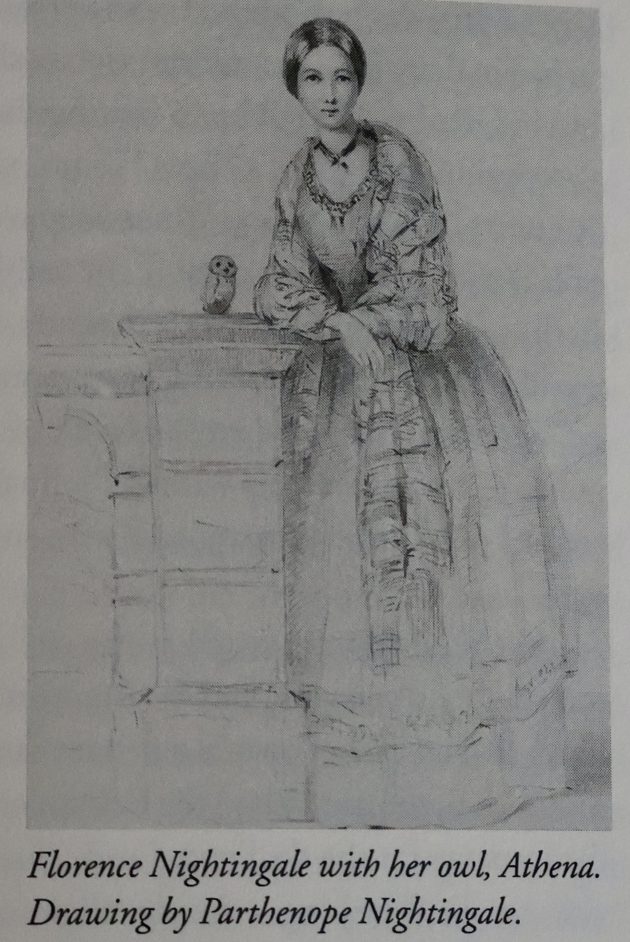 Sometime in October 1854, Florence is just about ready to leave for Crimea to improve conditions for the soldiers fighting in the war. For her astonishing work there, the reader will either need to read the book or the Cliff Notes style review summary. At Lea Hurst (the Nightingale’s family home), however, Athena the owl has been found dead. The housekeeper reports, ‘It was quite well at dinner and hopping about my room; and just now I found it on its back quite stiff and cold.’ It was determined that Athena the owl died of natural causes, and was mourned by all in the household at Lea Hurst and affectionately sent to be stuffed. Florence could never forgive the fact that while she was undertaking her journey to save dying soldiers, her sister, Parthenope, had let Athena die. Couldn’t her sister, Parthe, get even the simplest things right? (p. 295-296)