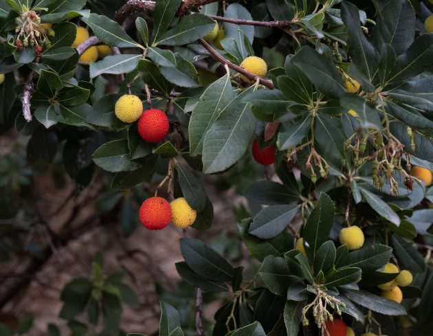 Many birds are reaching us now for the winter. Here, they join the local residents in finding ways of making it through the winter months. Conditions here in Gibraltar are not that severe, temperatures not usually dropping below +15oC for very long. All the same, insects are not as abundant as they are in spring and summer so alternative foods need to be found. In Gibraltar there is a wide range of Mediterranean shrubs that make up the matorral and many of these plants produce fruit. The fruit ripen, depending on the species, during the autumn and winter months. Each plant has its own time schedule and the schedule is designed to manipulate birds for their own ends.