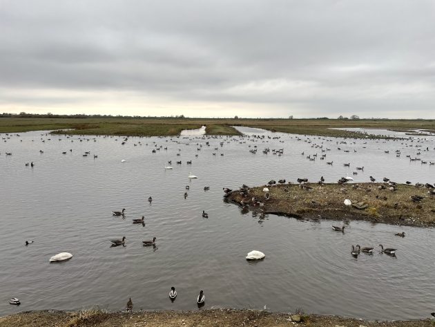 The view from the main hide at Welney – there should be much more water