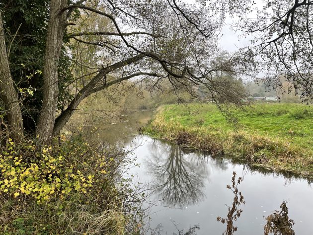 The Little Ouse river (the border between the counties of Suffolk and Norfolk) on a grey November day: water levels are currently the lowest that I have ever seen them