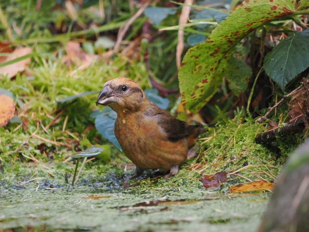 I did enjoy some pleasing photography on the last day of October when I spent the morning in my friend David Tipling’s woodland bird hide. The highlight of my session was a pair of Crossbills that came in briefly to drink – these finches are thirsty birds. They appeared shortly after I’d entered the hide and stayed just long enough for me to grab the photographs shown here, noteworthy as this was the first time that I’ve photographed a red-plumaged male Crossbill in England.